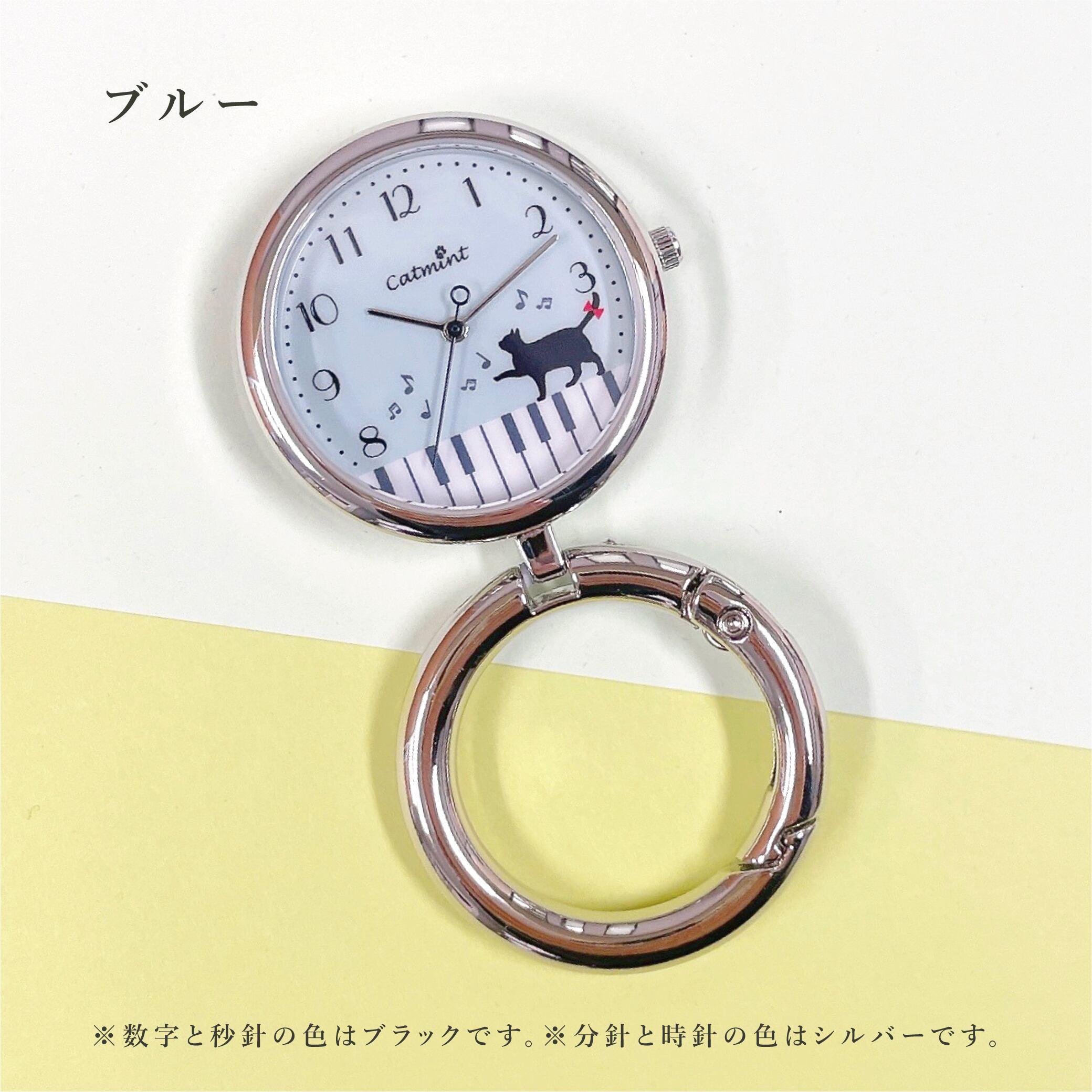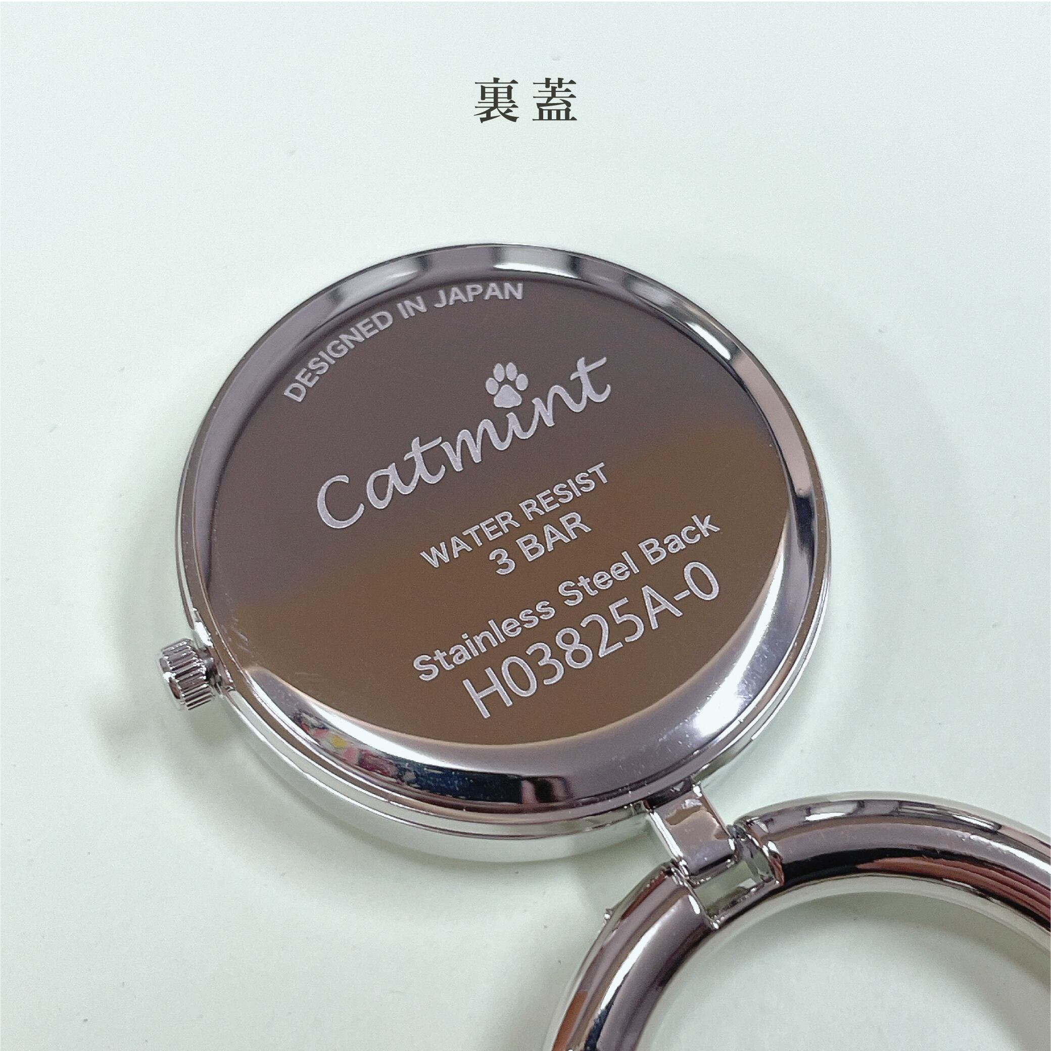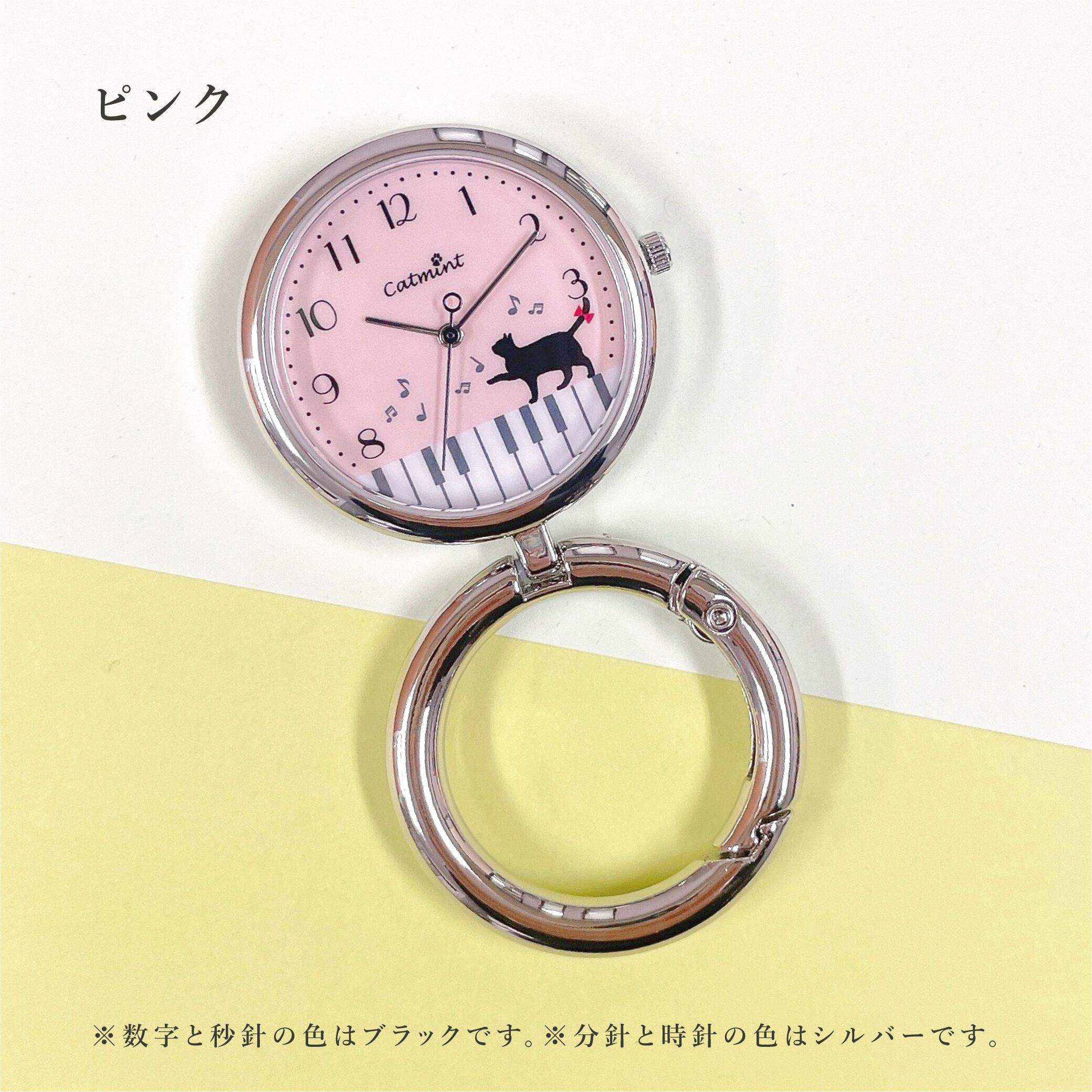 *・.猫のイラスト文字盤が可愛い2way仕様のチャームウォッチです。カラビナ部分が台座になりスタンドウォッチにもなるので旅行や勉強にもおすすめです.・*