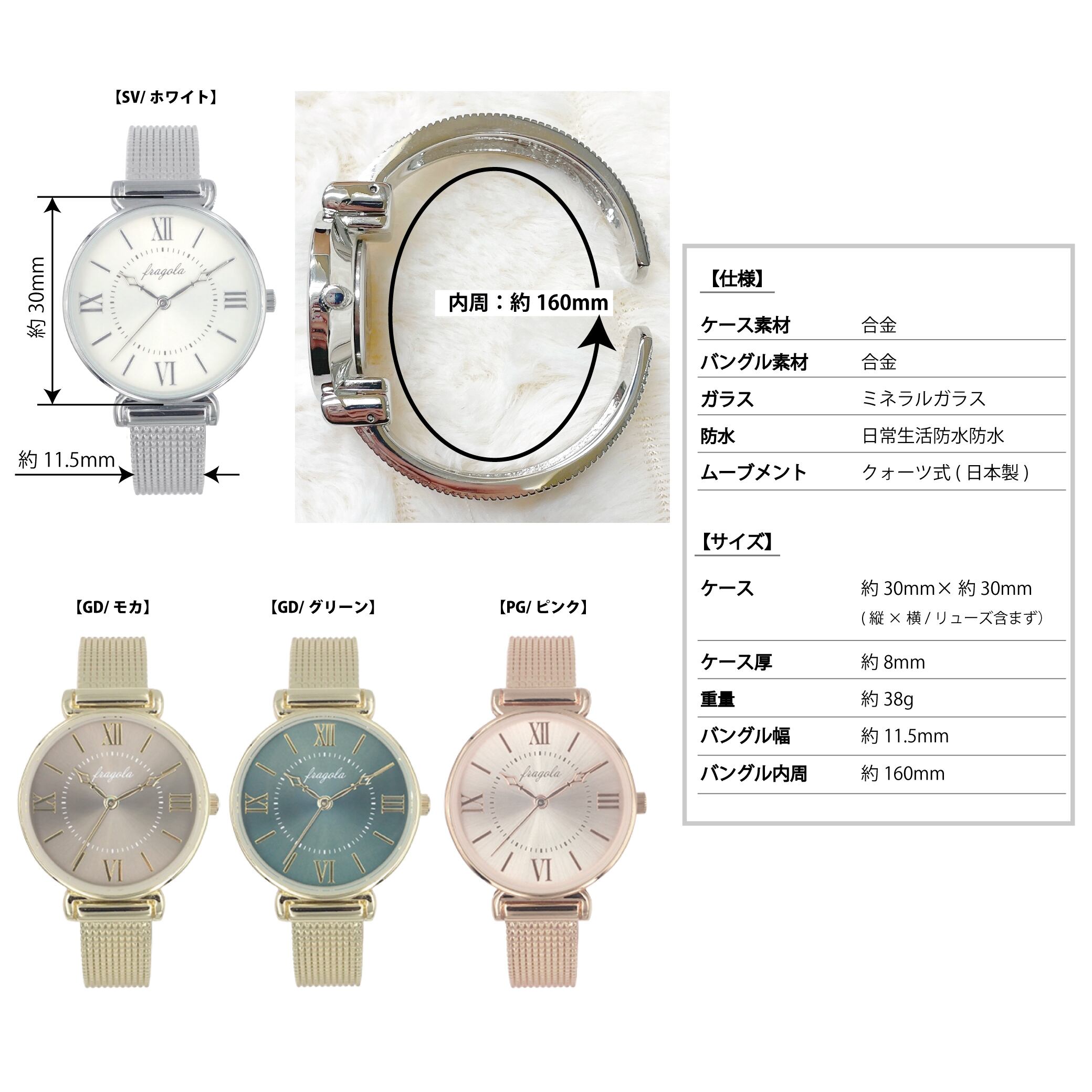 カラー:SV/ホワイト・GD/モカ・GD/グリーン・PG/ピンク