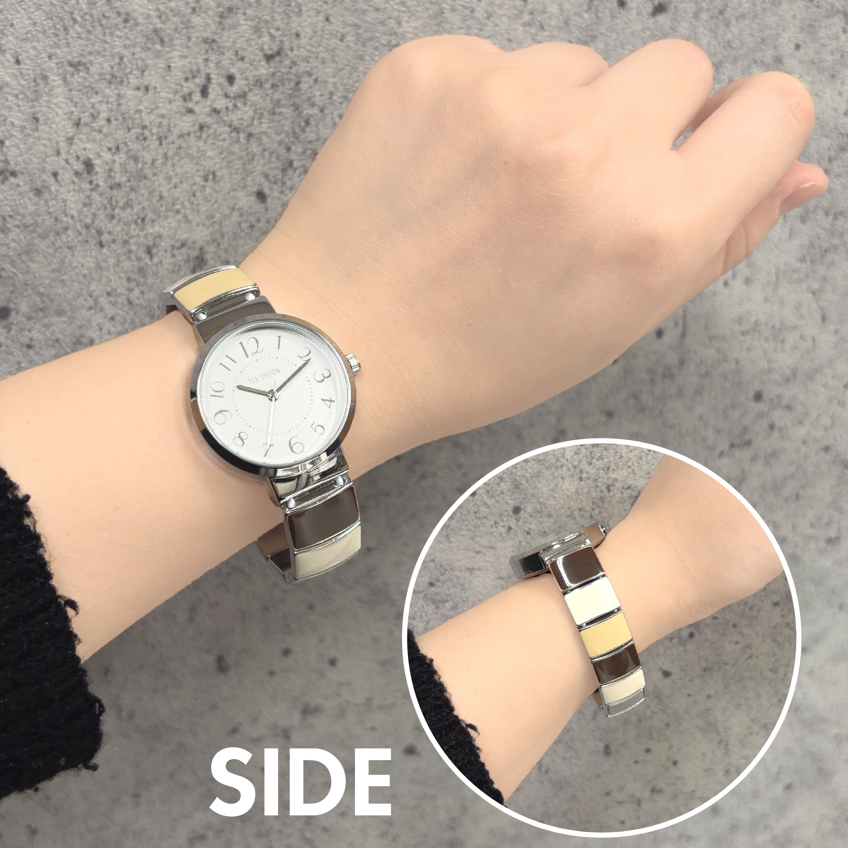 シンプルな文字盤とニュアンスカラーのエポが絶妙なバランスで大人可愛いを演出します★