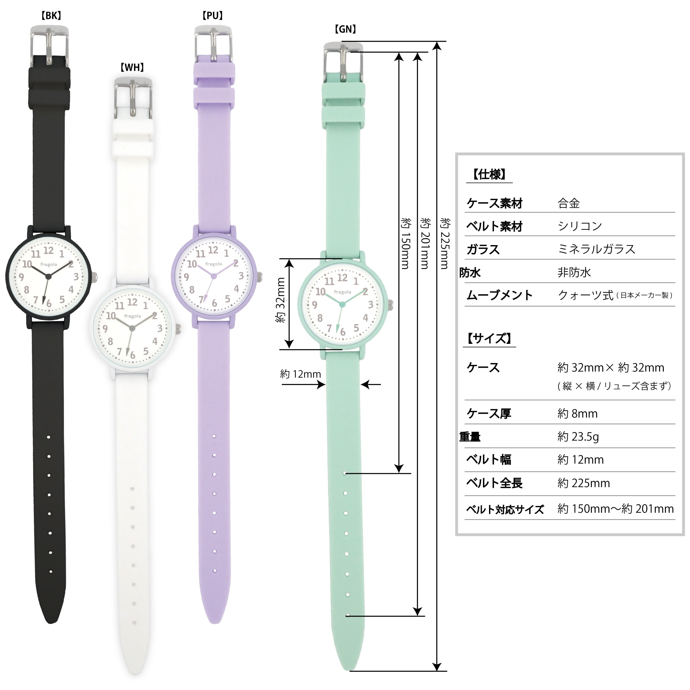 カラー:ブラック・ホワイト・パープル・グリーン