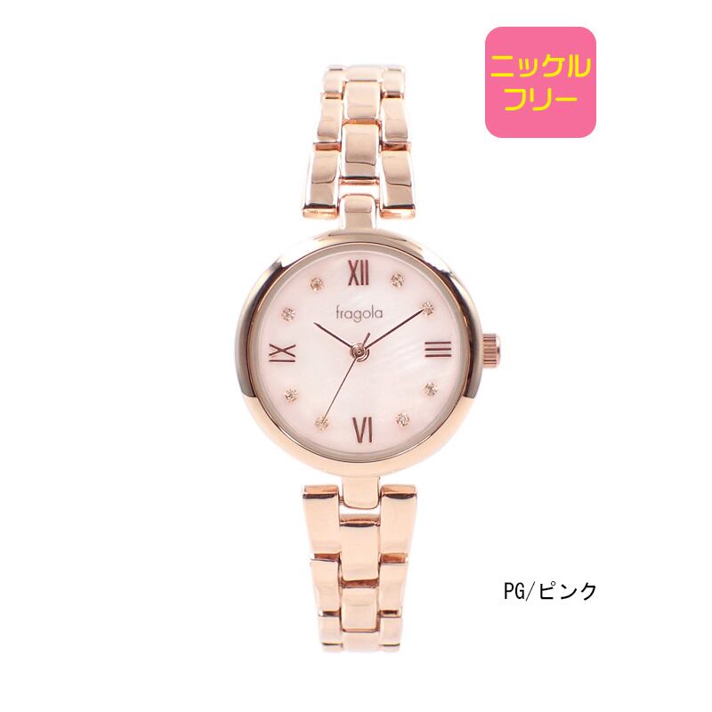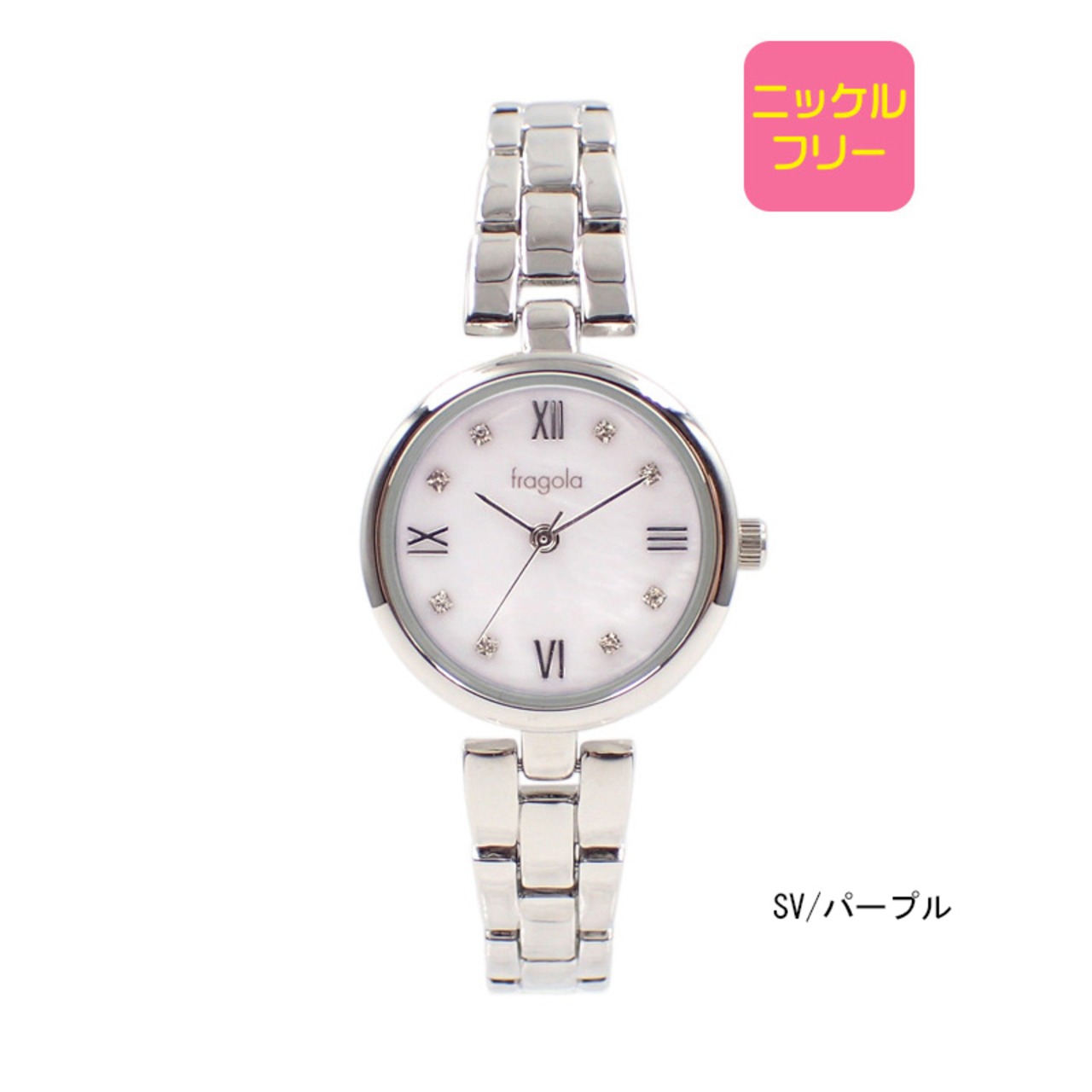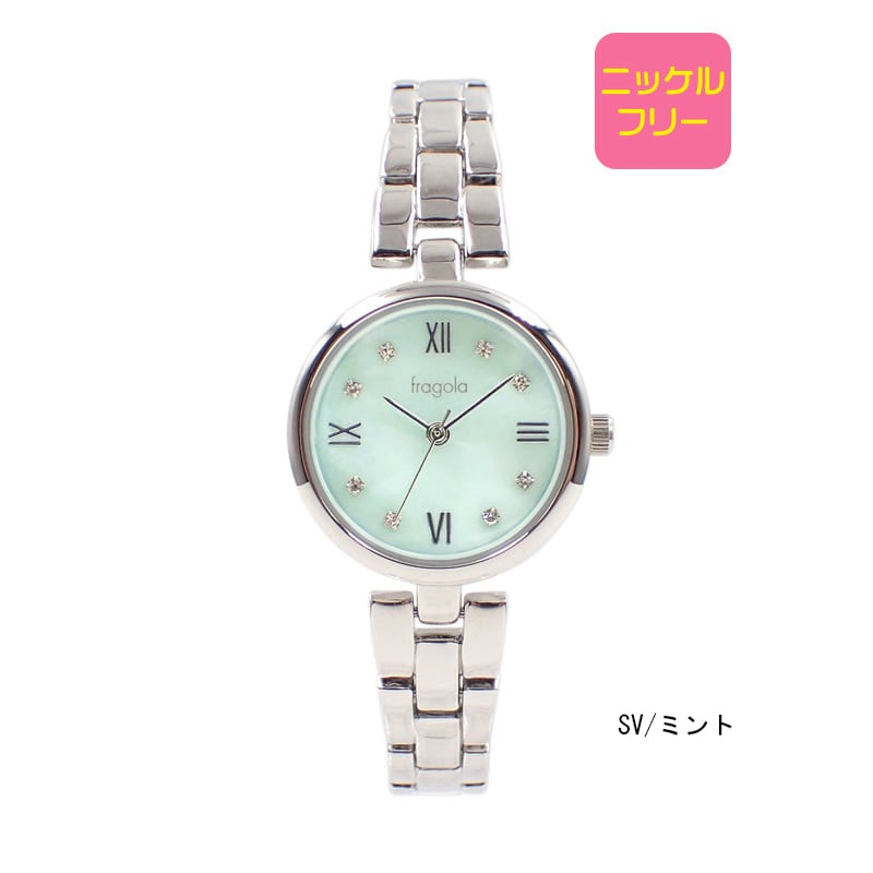 白蝶貝の文字盤がおしゃれなメタルウォッチです。